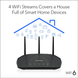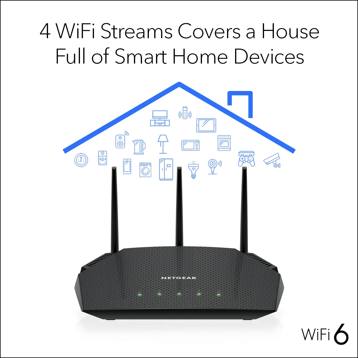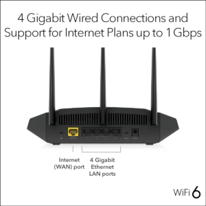 • Super-fast WiFi?Up to 3Gbps (600Mbps + 2.4Gbps) ? wireless speeds. The Nighthawk AX4 Router supports WiFi 6 (802.11ax), the latest generation of WiFi technology. Enjoy smoother streaming of 4K UHD content to smart TVs, mobile devices, and gaming consoles.